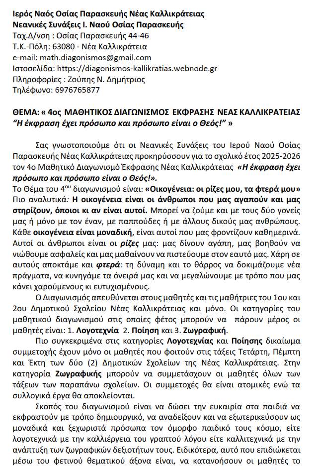 Προκήρυξης του 4ου Μαθητικού Διαγωνισμού έκφρασης Νέας Καλλικράτειας.