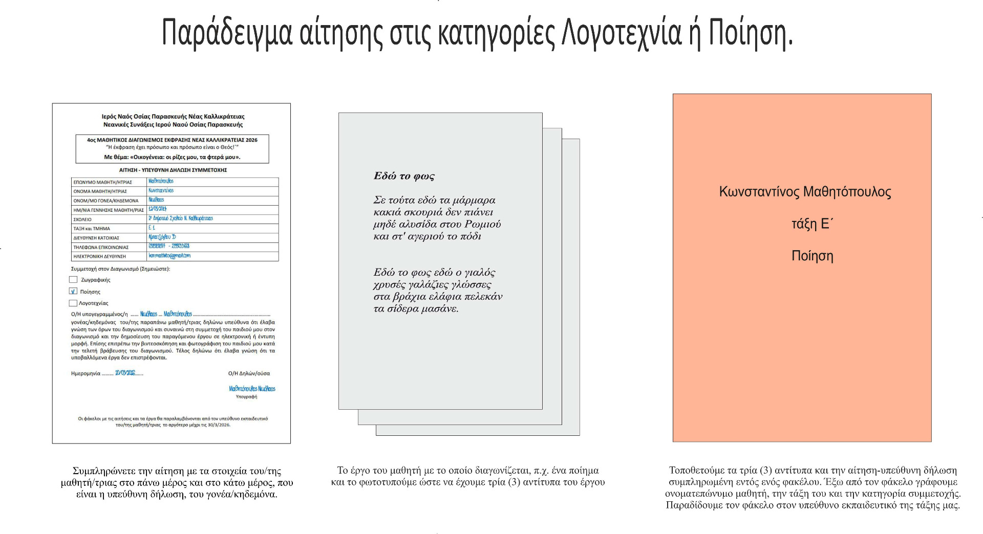 Δικαίωμα συμμετοχής στον Διαγωνισμό έχουν μόνο οι μαθητές/τριες των δύο Δημοτικών Σχολείων της Ν.Καλλικράτειας. Τα έντυπα που απαιτούνται